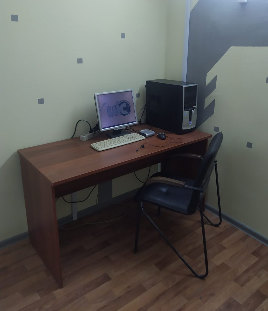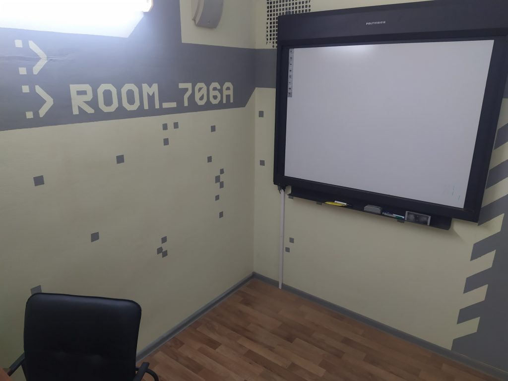 Оснащена ПК на базе Win7, оборудована наушниками, микрофоном, камерой и смарт-доской для обеспечения учебного и научного процесса.