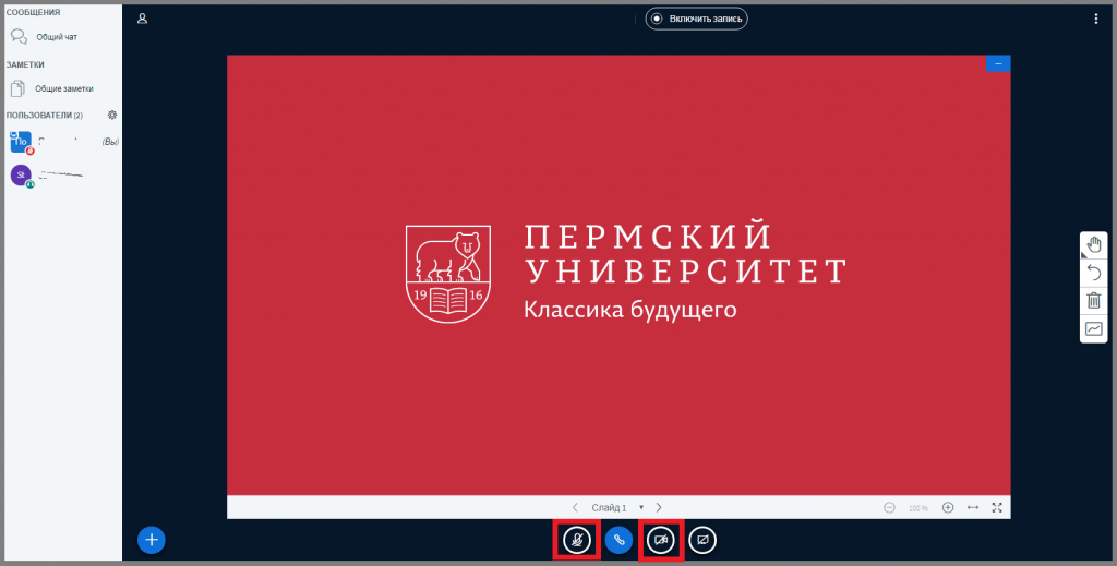 Если вы хотите временно приостановить занятие – сделать перерыв на 2-3 минутки, просто отключите микрофон и камеру, иконками в нижней части интерфейса. Вернувшись, сделайте их снова активными – нажав на иконки снизу вновь (Рис.1).